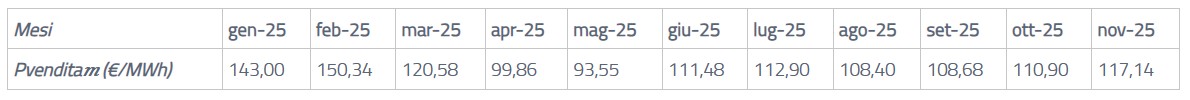 Il GSE ha reso disponibili i prezzi medi mensili di vendita dell’energia nel 2025, necessari per valorizzare i flussi della fase di anticipazione. I valori vanno da 143 €/MWh di gennaio a 117,14 €/MWh per novembre, con una media tendenziale coerente con l’andamento delle zone di mercato. Questi prezzi sono applicati ai volumi mensili dell’energia oggetto del contratto.