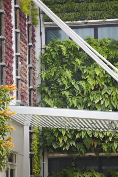 Verde pensile e schermature solari – Le superfici verticali e orizzontali rivestite dai giardini pensili migliorano l’isolamento termico dell’edificio.