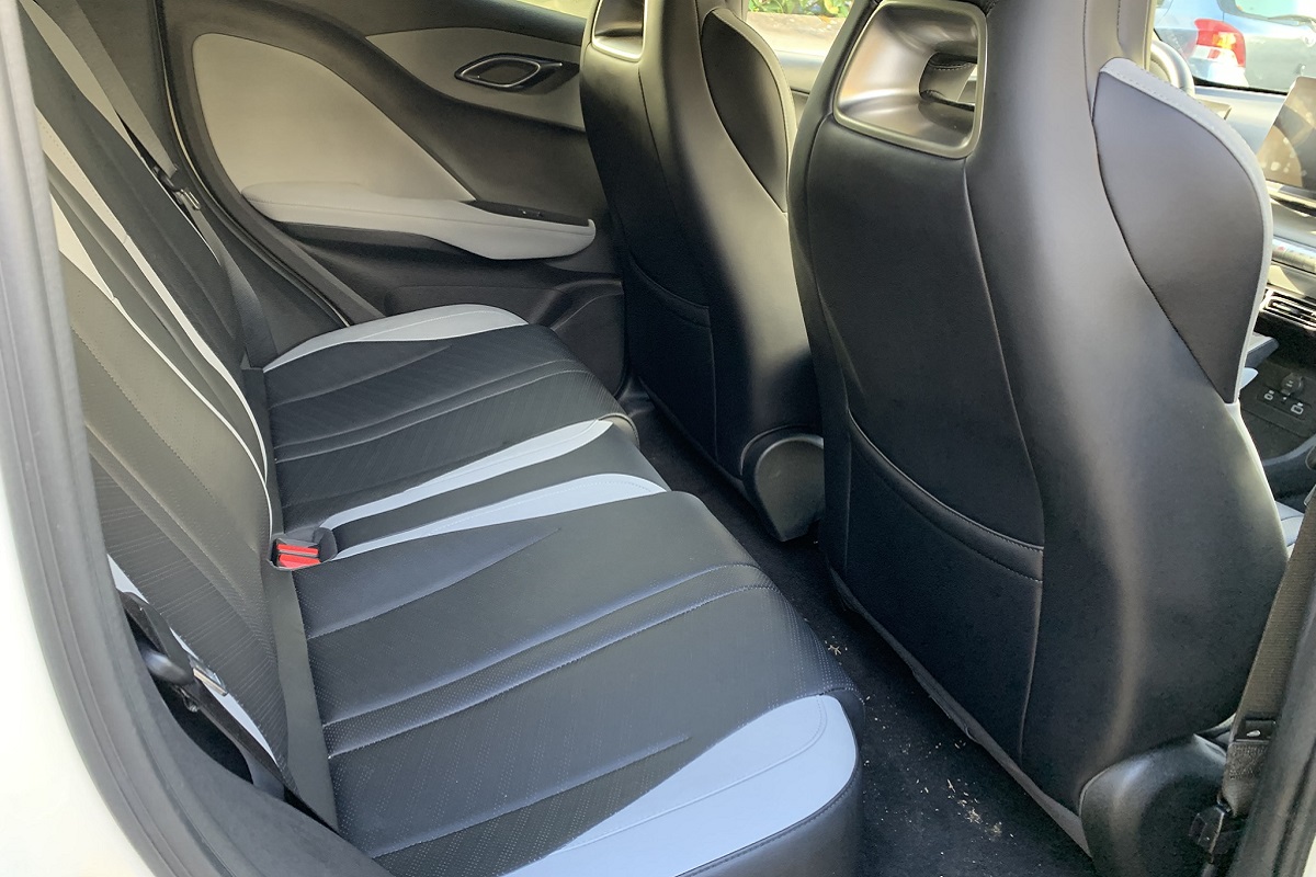 Difficile trovare un’auto elettrica, piccola, a questo costo con tanta cura nei dettagli interni e qualità dei materiali. Belle le linee, il disegno della plancia, il pannello ondulato, il tunnel centrale, tutto il materiale usato è molto gradevole al tatto. Anche il volante è funzionale, solido, con i comandi giusti da utilizzare riducendo la distrazione. Interessante la scelta del selettore di marcia dalla forma cilindrica sotto al monitor centrale. All’inizio poco pratico, poi ci si fa l’abitudine, anche se la disposizione del selettore di marcia è un problema comune a molte elettriche. Utile anche il portaoggetti centrale e la ricarica magnetica per lo smartphone.