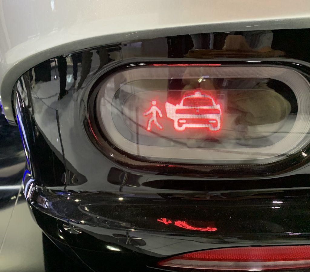 Nella parte anteriore per comunicare con i pedoni ci sono degli schermi LED con emoji. “Questo serve affinché i pedoni sappiano quando l’auto non ha un occupante, che l’auto può vederli ed è sicuro camminarci davanti”. Ovviamente si tratta di una BEV, al 100% elettrica. “Può passare dal 20% all’80% in circa 10 minuti, con batteria agli ioni di litio. Ha un’autonomia di circa 500 chilometri e andrà in produzione l’anno prossimo” ci dice ancora Amy Luca.