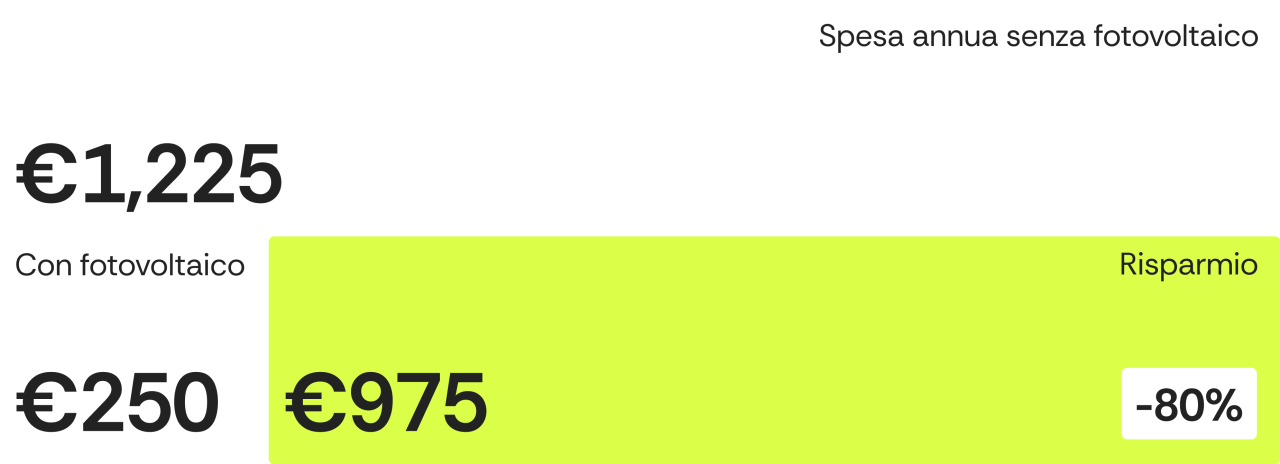 Energia dalla rete o da accumulo; puoi simulare entrambi i casi con il nostro tool. Durante le ore senza produzione solare, l’energia viene prelevata normalmente dalla rete elettrica. Se installi un sistema di accumulo fotovoltaico, puoi immagazzinare l’energia prodotta in eccesso durante il giorno e utilizzarla la sera o nei momenti di scarso irraggiamento.